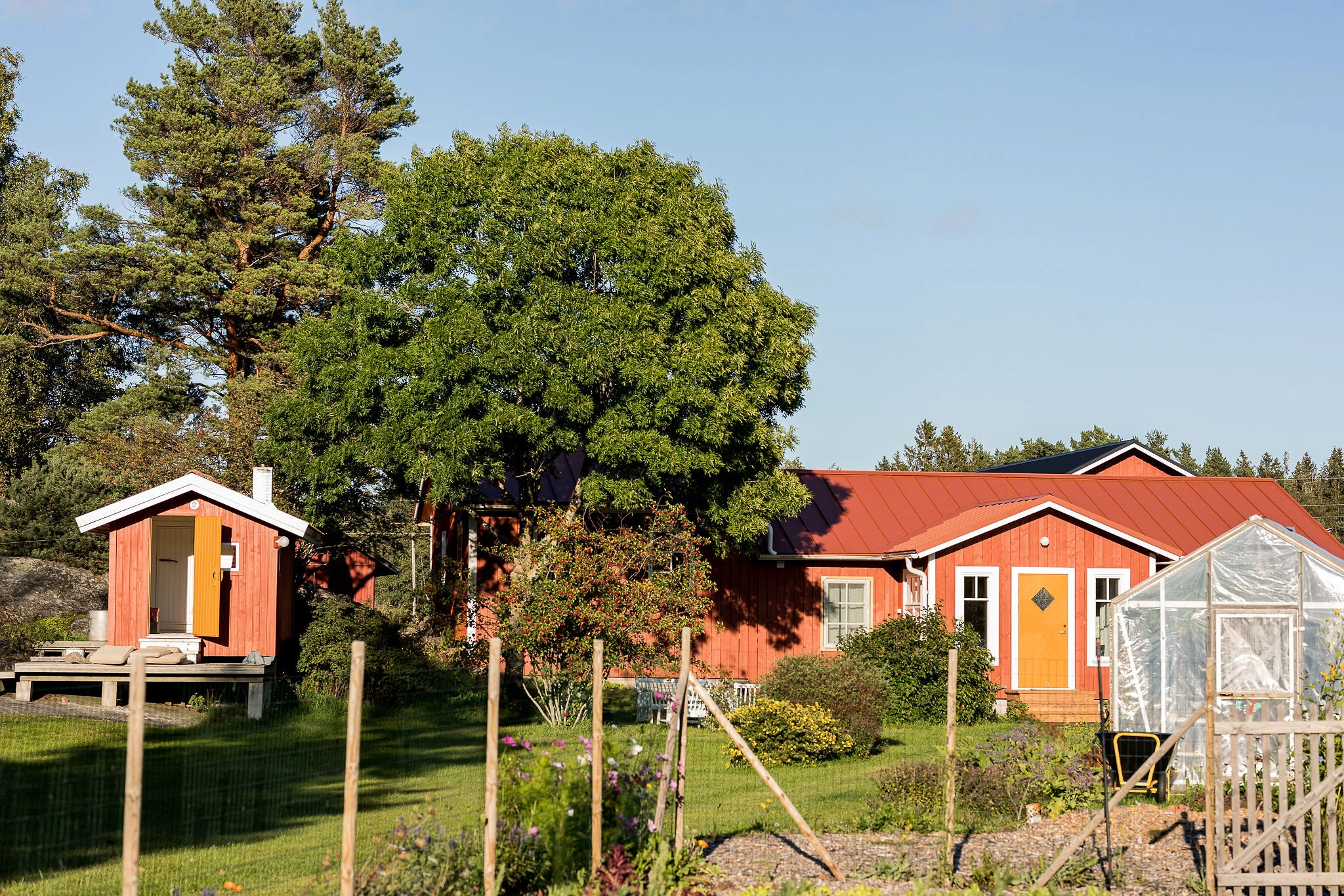 Brändö Bike & Bed invites you to a comfortable stay on our Borkenholm farm, where a cozy garden, shared patios and a swimming pier await you, just a short walk away.